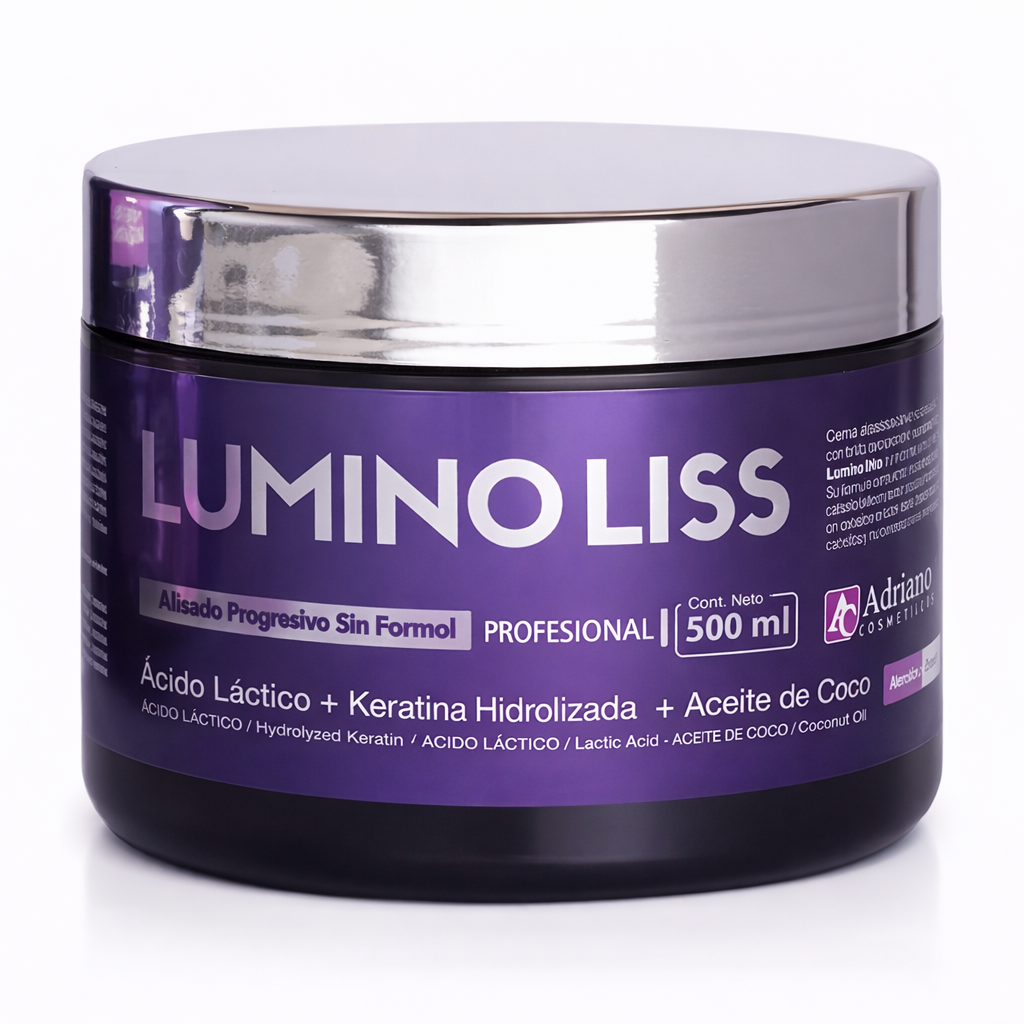 A fórmula do Lumino Liss conta com a ação combinada de ativos altamente eficazes como o Ácido Lático, que atua no alinhamento dos fios, auxilia no alisamento progressivo e promove maciez e brilho; a Queratina Hidrolisada, responsável por repor a massa capilar, fortalecer a fibra e reduzir a quebra; e o Óleo de Coco, rico em ácidos graxos nutritivos que hidratam profundamente, selam as cutículas e combatem o ressecamento.